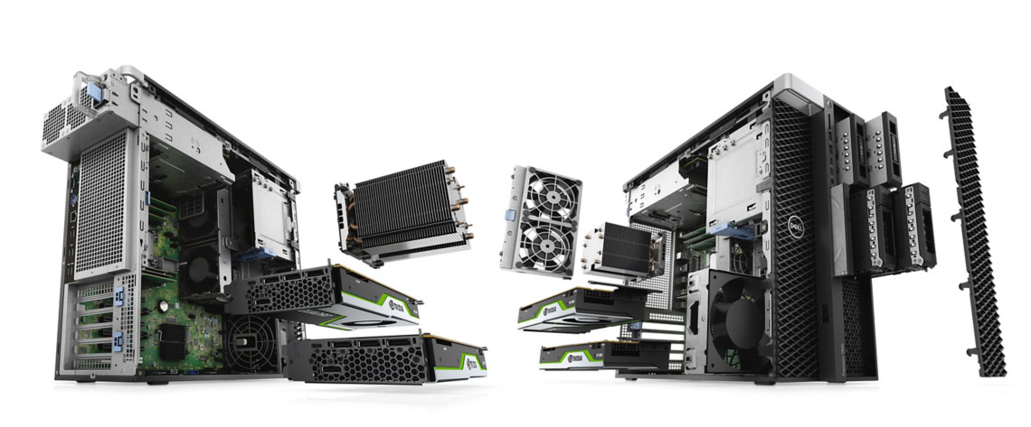 Adapts to your innovations: Your Precision 7820 Tower is ready for complex projects, including virtual reality and AI workflows, with the next generation AMD Radeon Pro™ and highest-performing NVIDIA Quadro® RTX graphics. Your workstation supports up to 600W of graphics power up to 300W per card (single CPU system).