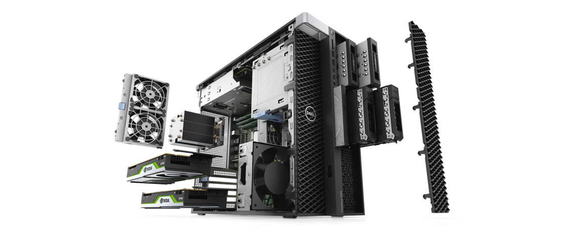 Featuring a FlexBay design, front access, hot-swappable storage and multichannel thermals to keep it cool under pressure, the Precision 7820 Tower grows with your ideas no matter where they take you.